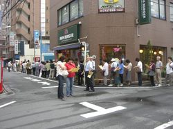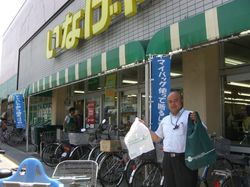 午前10時前には今日から「レジ袋有料化試験」の始まるいなげや日野駅前店へ。大勢のお客さんが開店前から並んでいる。開店と同時に空いた入口にはスタッフが「本日より、当店ではレジ袋を有料化いたします」との口上を述べながら記念品のマイバックを配っていた。